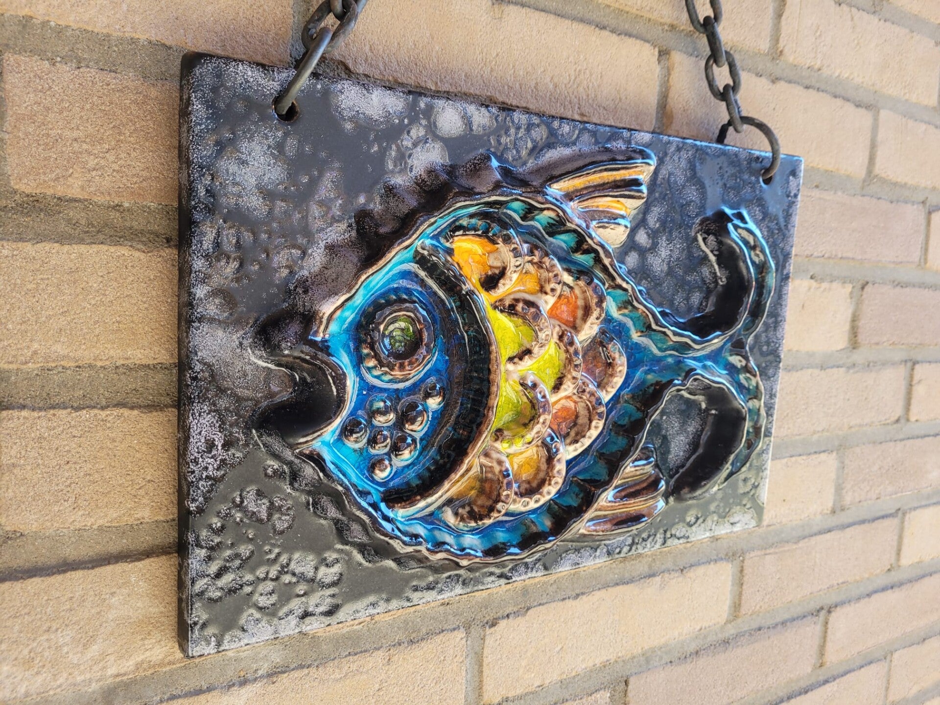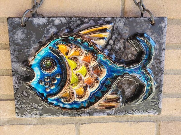 Zeer mooie vintage wandtegel van een vis