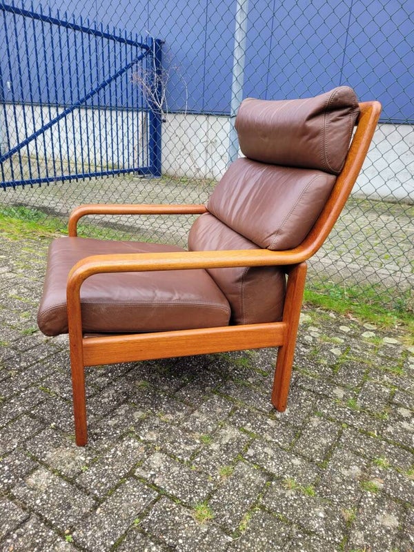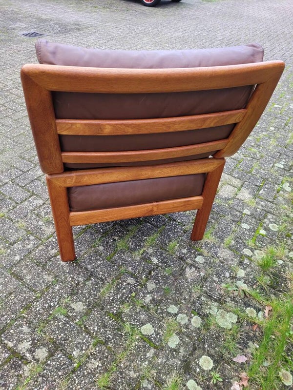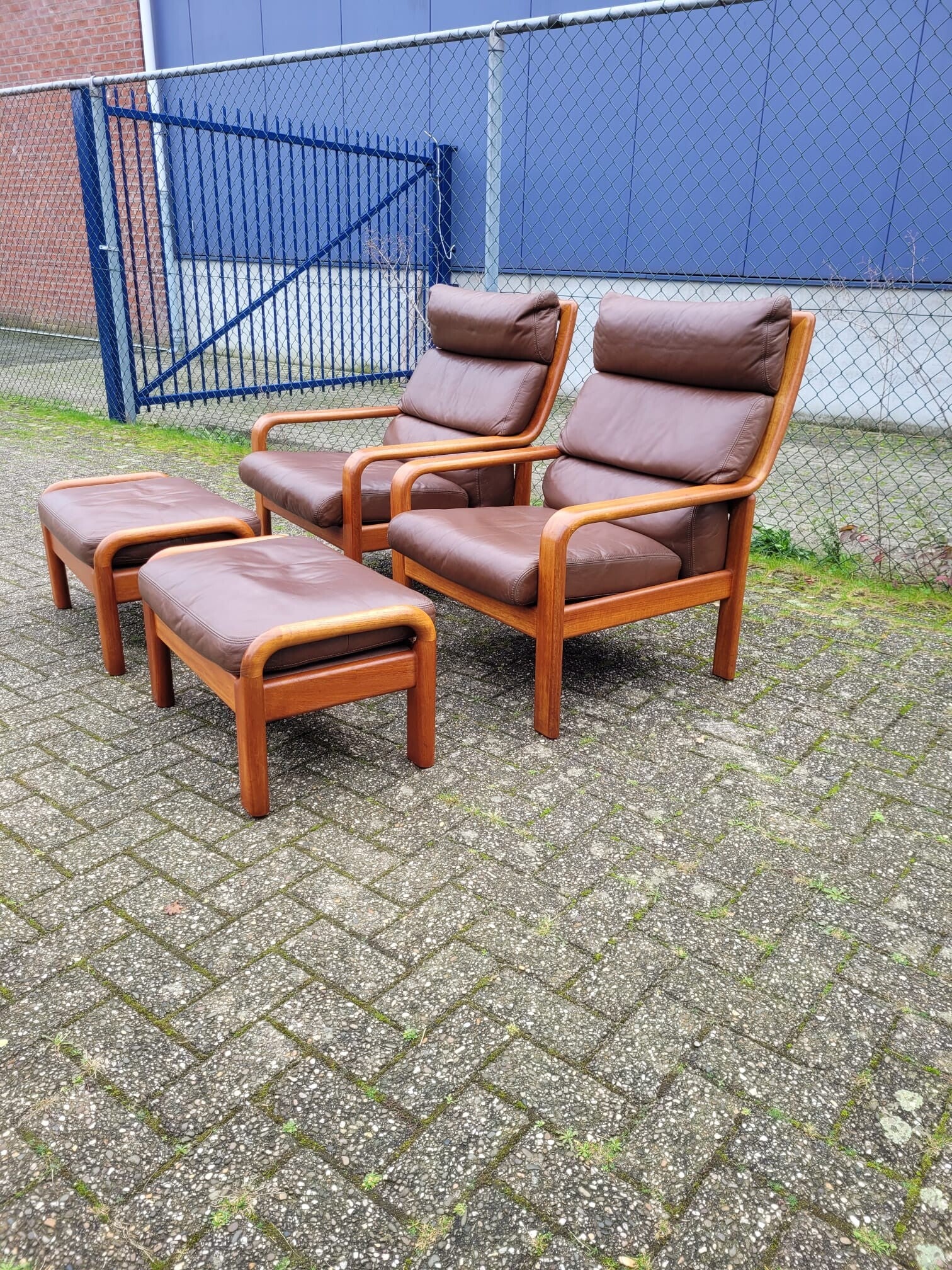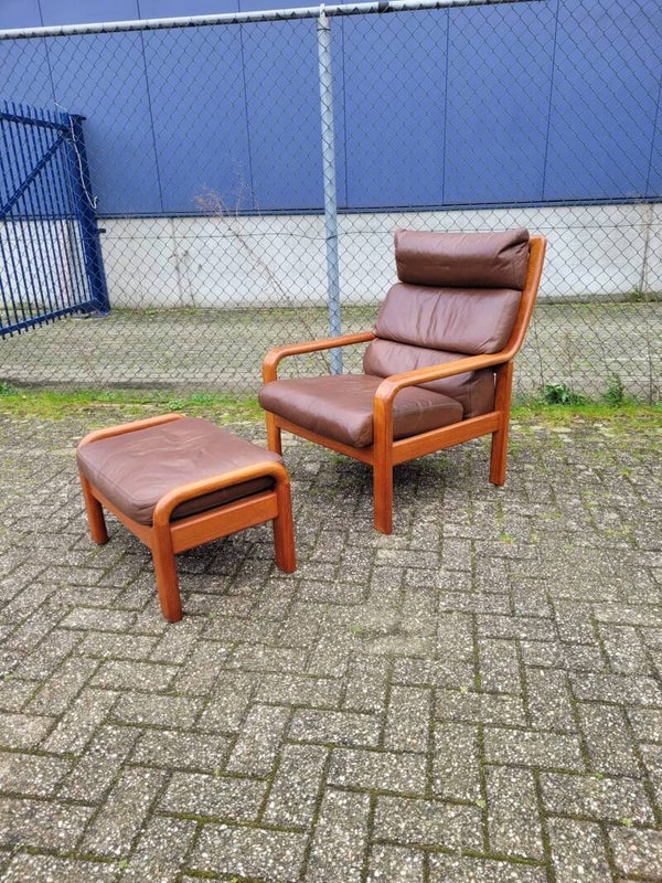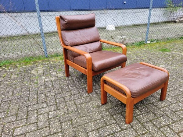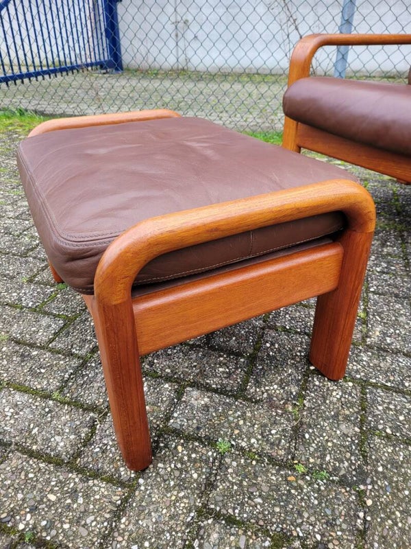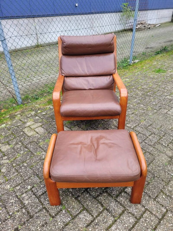 Zeer mooi vintage lederen fauteuil met ottoman van L. Olsen & Søn