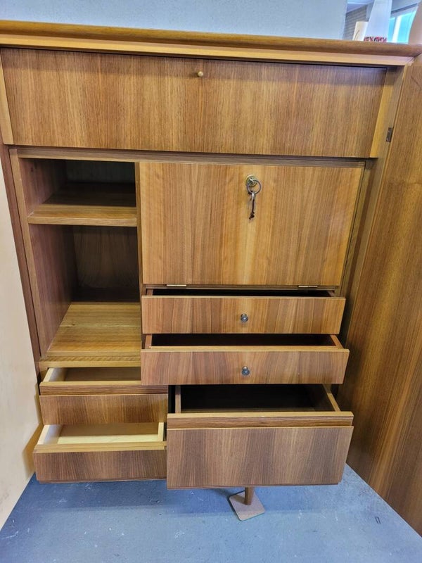 Aan de rechterzijde bevinden zich lades en kastjes in de kast waarvan 1 met sleutel